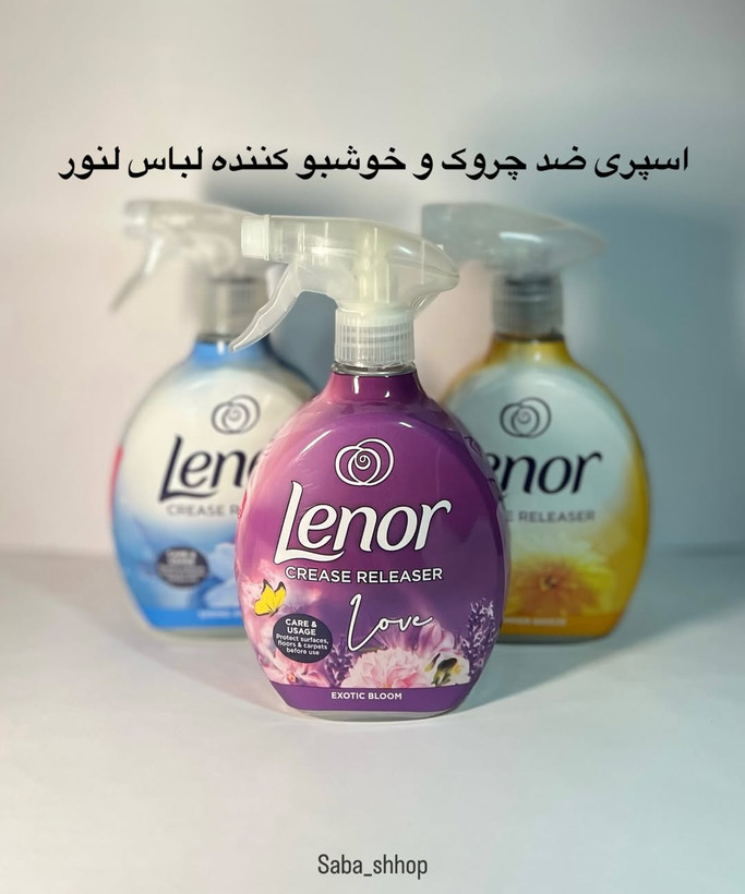 لباسات همیشه مرتب، همیشه خوشبو! با اسپری ضد چروک Lenor دیگه اتو کشیدن وقتگیر نیست! سه رایحهی خاص برای هر سلیقهای: Love (یاسی) Spring (آبی) Summer (زرد)